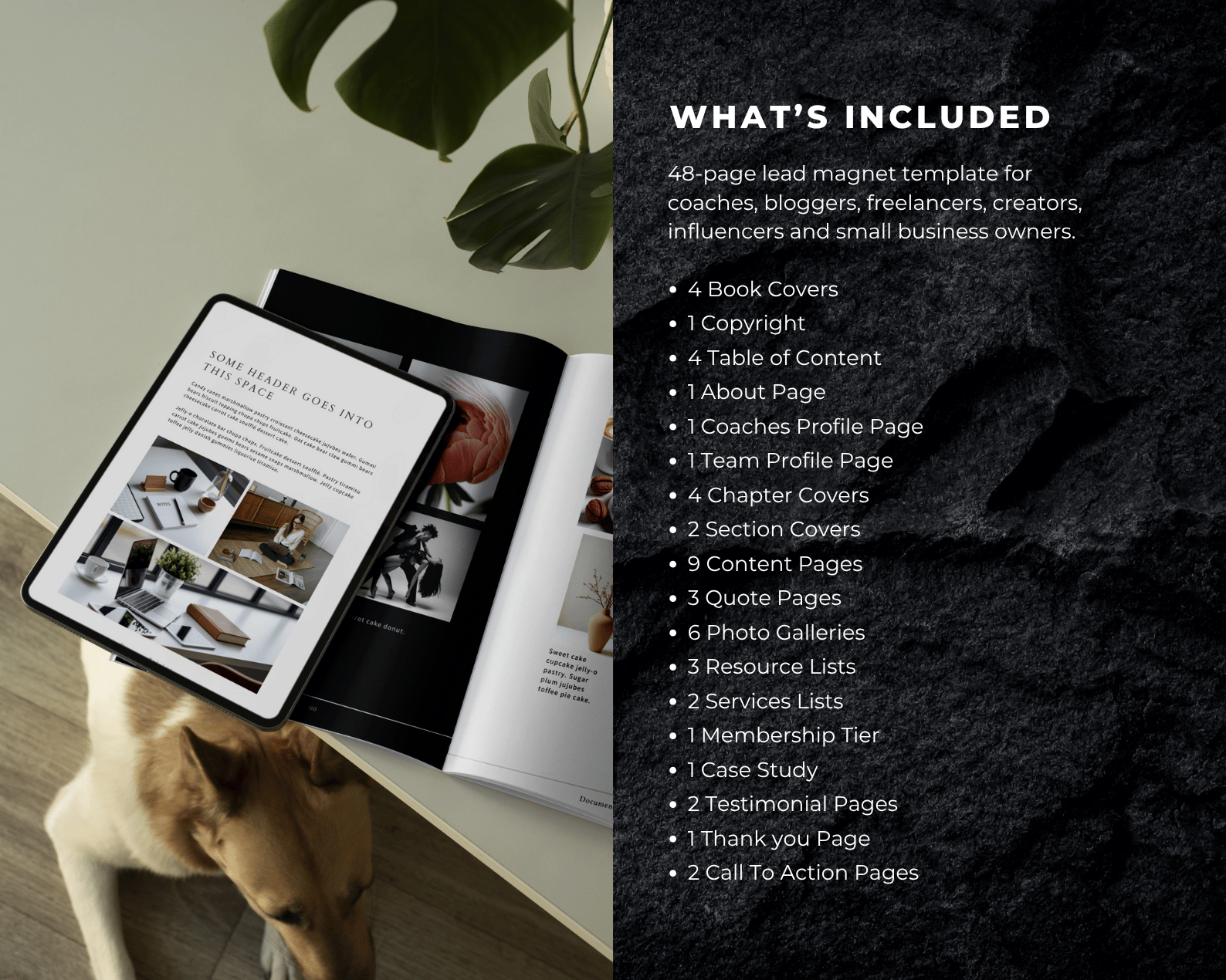 This bundle includes a total of 48 unique Canva templates. This is perfect for coaches, content creators, bloggers, digital marketers, and anyone who finds themselves in need of a lead magnet, whether to send as a freebie to your website visitor, to a potential client or partner or sponsor.